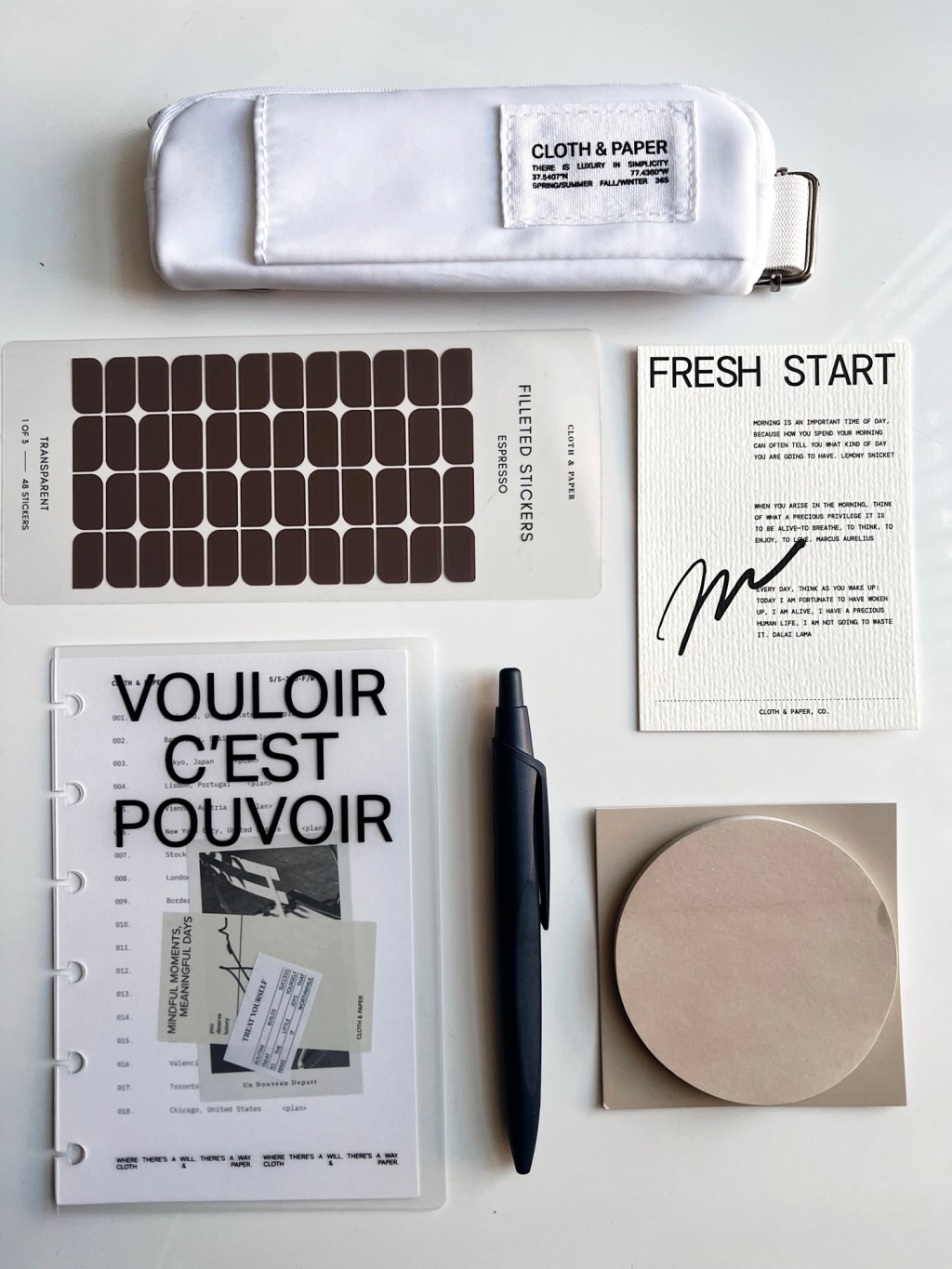 To start this color palette was everything for me (except the blue I dont know why they threw that in there, maybe for a pop of color 🤷🏾♀️ idk) The sticky notes, espresso stickers, pen, and pouch pair AMAZINGLY with the ESPRESSO TRAVELER NOTEBOOK SET that I use for my daughter. I’ll do a full vid of my 2025 setup for her and how I’m using it currently. Also the Moments Planner Cover + Dashboard set is a layering moment to gag over okay 👌🏾