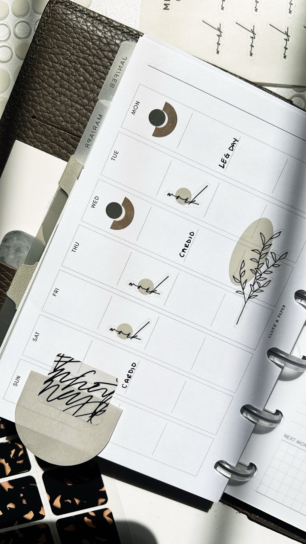 March’s C&P box was packed with items that I loved and was also curious about like the WEEKLY BLOCK PLANNER INSERT. I love how you can stack items on your day, and ya’ll know I love adding a cute lil deco moments where I can. I’ve done that here by cutting my freebie Tortoiseshell and CORTADO SPOTLIGHT STICKERS in half and aligning my NORI AND RISTRETTO DOT STICKERS in the middle. I also cut my MINI OBLONG STICKY NOTES in half to create a bottom tab and layered the SIGNATURE TIMEBLOCK STICKER on-top for extra aesthetic adhesiveness. Then I added some cute lil FLORAL STICKER moments throughout and my favorite WORK SCRIPT STICKERS.