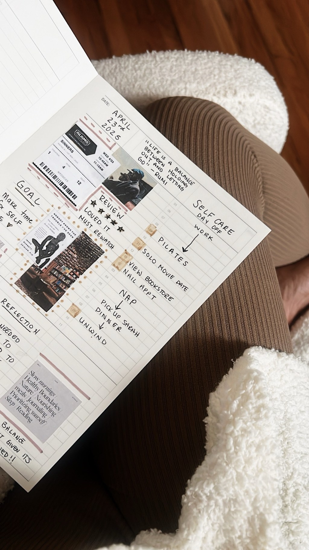 And then we have the 365 Undated Daily that I decided to turn into reflection journal that I’ll be using for personal memory keeping, gratitude, and overall reflections from any daily experience I feel the need to release or capture. For my first entry I decided to build off of a self care day that I had recently and I absolutely loved out it turned out. I printed images on my regular degular printer with normal paper and just cut them to size and used a GLUE PEN to stick them on to my page. I added a lil razzle dazzle with my ZEBRA MILDLINER MARKERS and some personal notes with my .SIGNO RT1 0.5 PEN I love how inky and bold this pen is, especially on larger size pages where I really want my words to pop.
