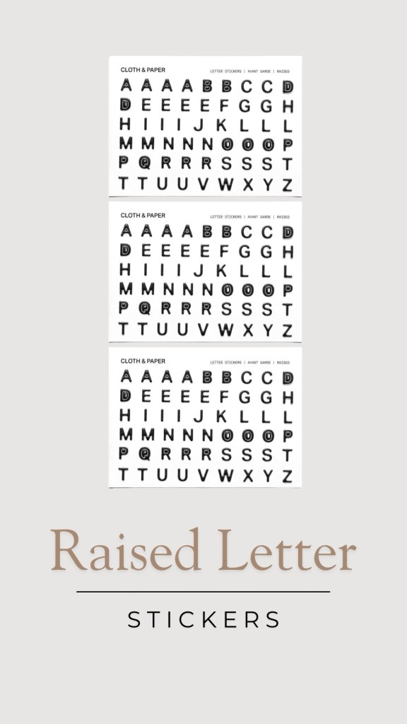 While we’re on the topic of stickers, they will always add the perfect touch for individuality. For the initial introduction page I purchased the RAISED LETTER STICKERS in Avant Garde. I’ll also use some of my favorite dot, drops, and timeblock stickers to personalize my monthly and weekly layouts to my individual needs and personal style.