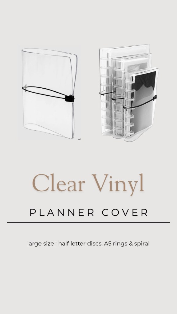 To start you can use a cover of your choosing. I particularly like the CLEAR VINYL COVER because it allows you to see right through to my personal layering/cover style. You can also use any of the large size LEATHER FOLIO’S.