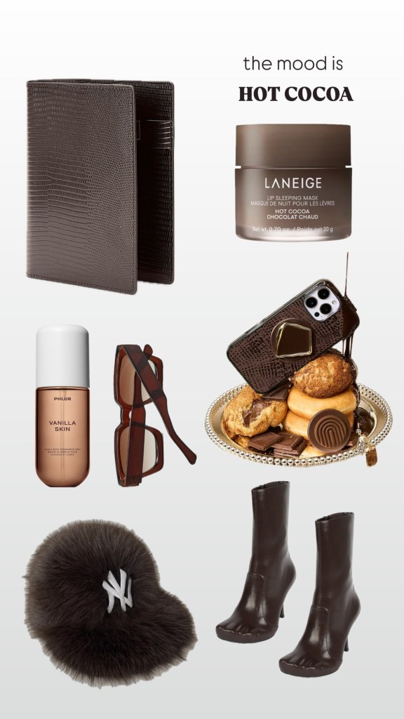 Chocolate brown has swept the fashion market all winter and has been a stable for me this season. Here’s a quick list of my current favs.